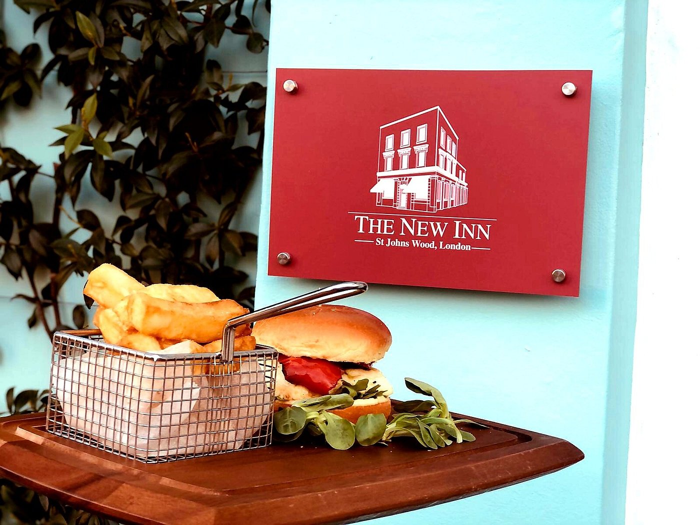 100% Beef Patty, Lettuce, Caramelised Onion, Tomato and New Inn Sauces in a Toasted Brioche Bun